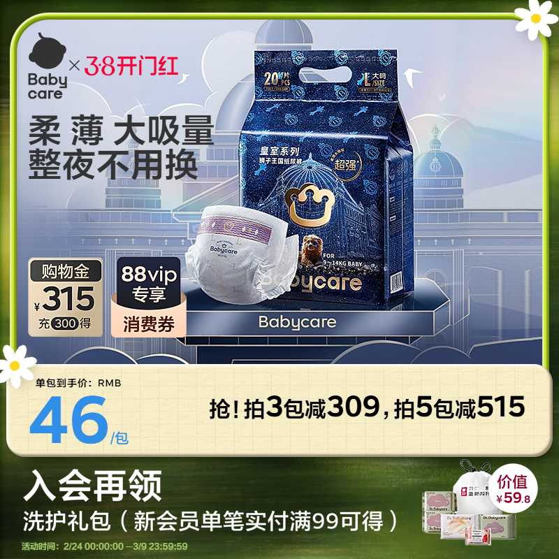 皇家至柔马年新春款拉拉裤纸尿裤箱装尿不湿婴儿尿不湿柔软大吸量