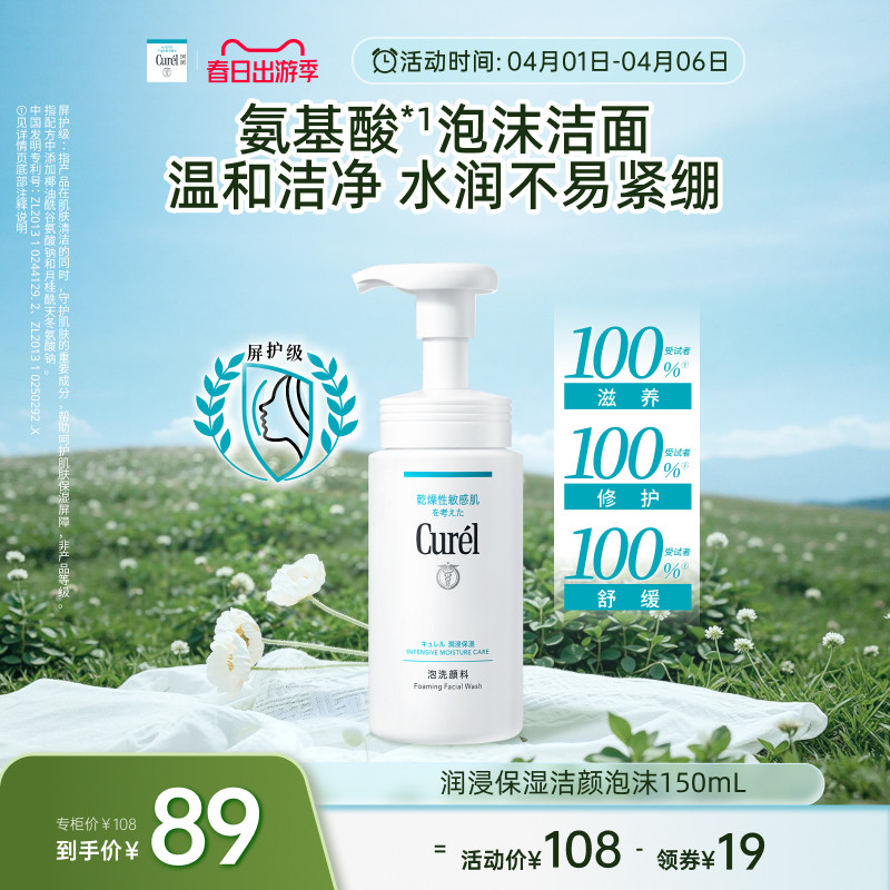 【春日出游季】珂润保湿洗面奶洁面温和泡沫150ml男女敏感肌清爽