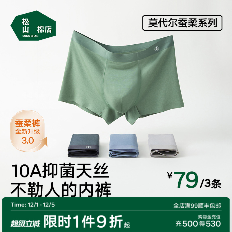 松山棉店蚕柔莫代尔男士内裤透气男生短裤青少年纯棉大码平角裤衩