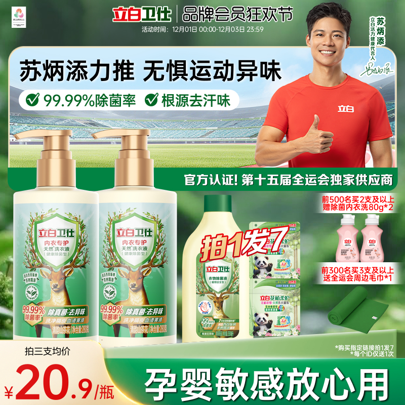 立白卫仕内衣洗衣液洗内裤专用女士清洗真菌净血渍去除正品官方