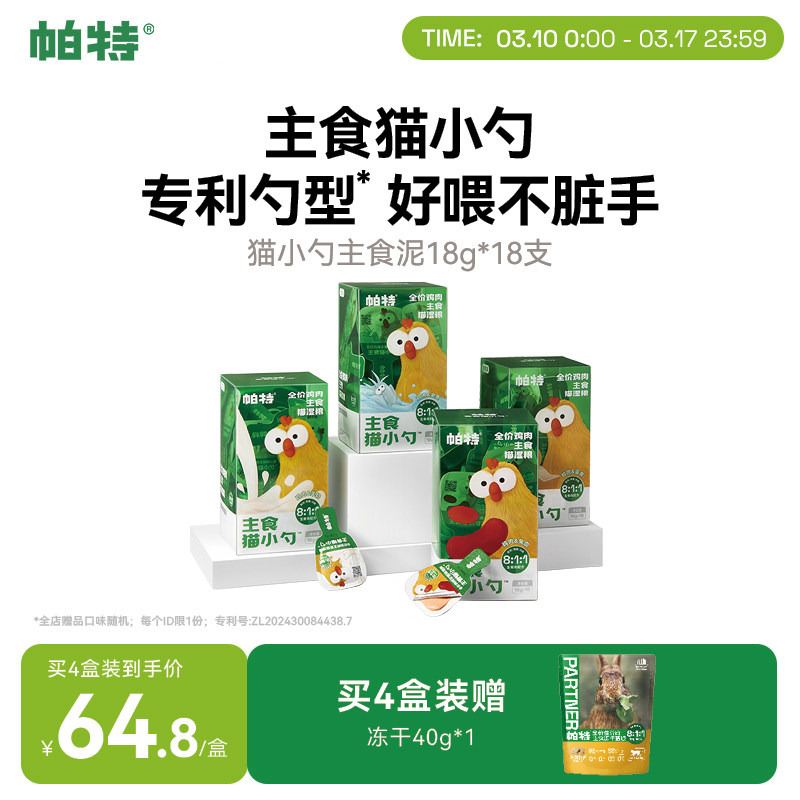 帕特猫小勺生骨肉营养主食猫条主食罐猫咪非零食补水成猫饭湿粮