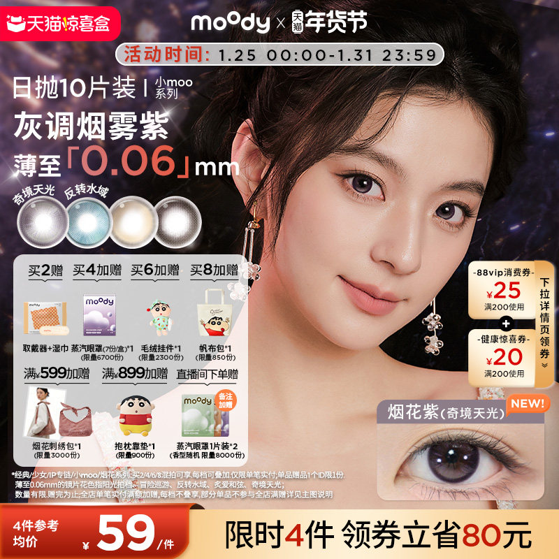 moody美瞳日抛奇境天光烟花紫彩色隐形眼镜小moo大直径10片