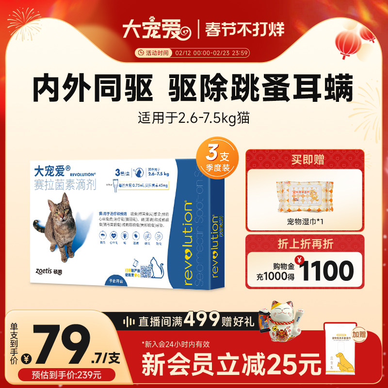 大宠爱旗舰店成猫幼猫犬体内外一体驱虫药滴剂驱耳螨跳蚤猫咪狗狗