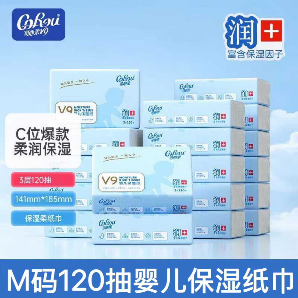 可心柔婴儿柔纸巾120抽云柔巾乳霜纸宝宝保湿纸巾家用抽纸便携装