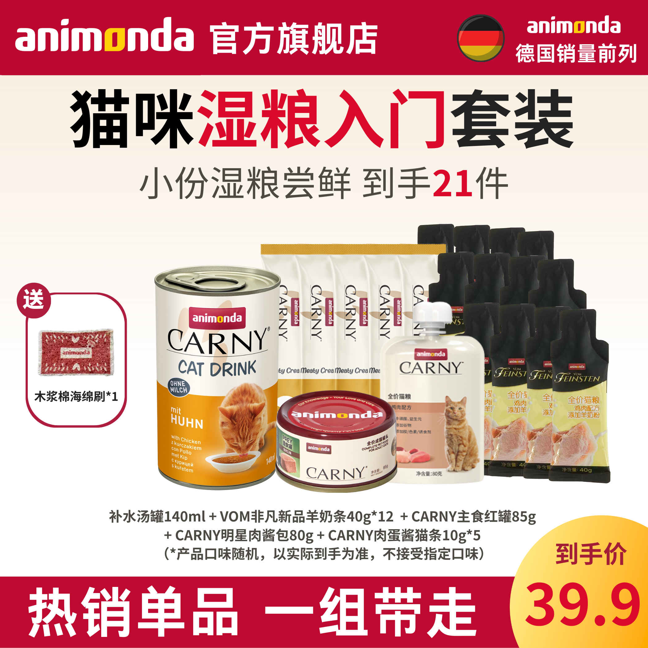 【湿粮入门】爱诺德animonda主食猫酱包猫咪罐头猫条肉泥新手套装