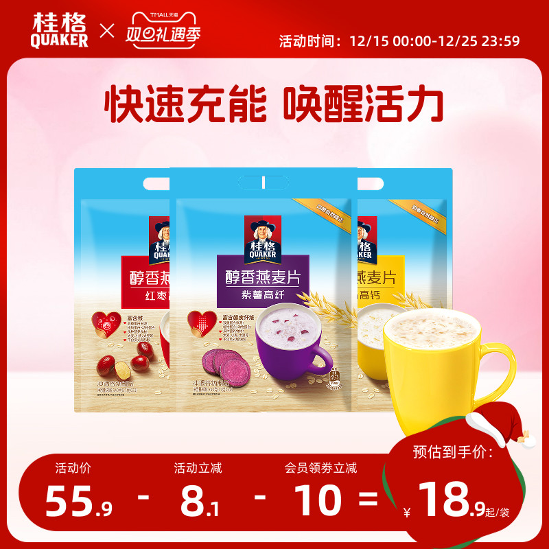 桂格燕麦片特浓牛奶红枣醇香540g*2袋装速食冲饮营养燕麦
