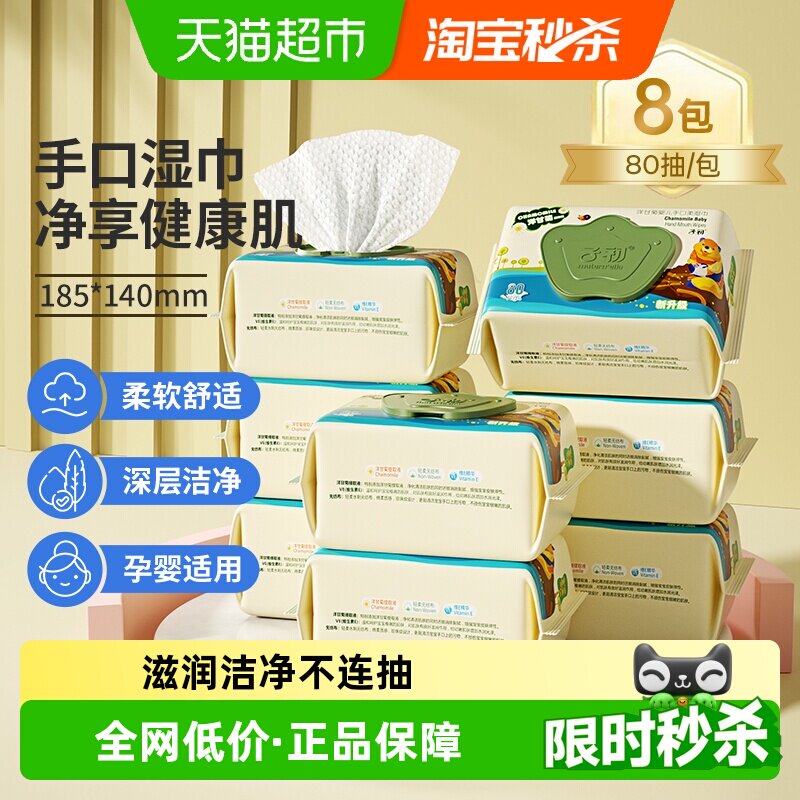 婴儿手口湿巾80抽大包新生宝宝屁屁专用加厚大包装带盖湿巾纸巾