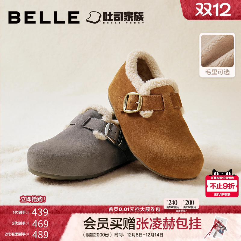 周雨彤同款百丽厚底全麦吐司2代全包勃肯棉鞋冬季加绒雪地靴女预