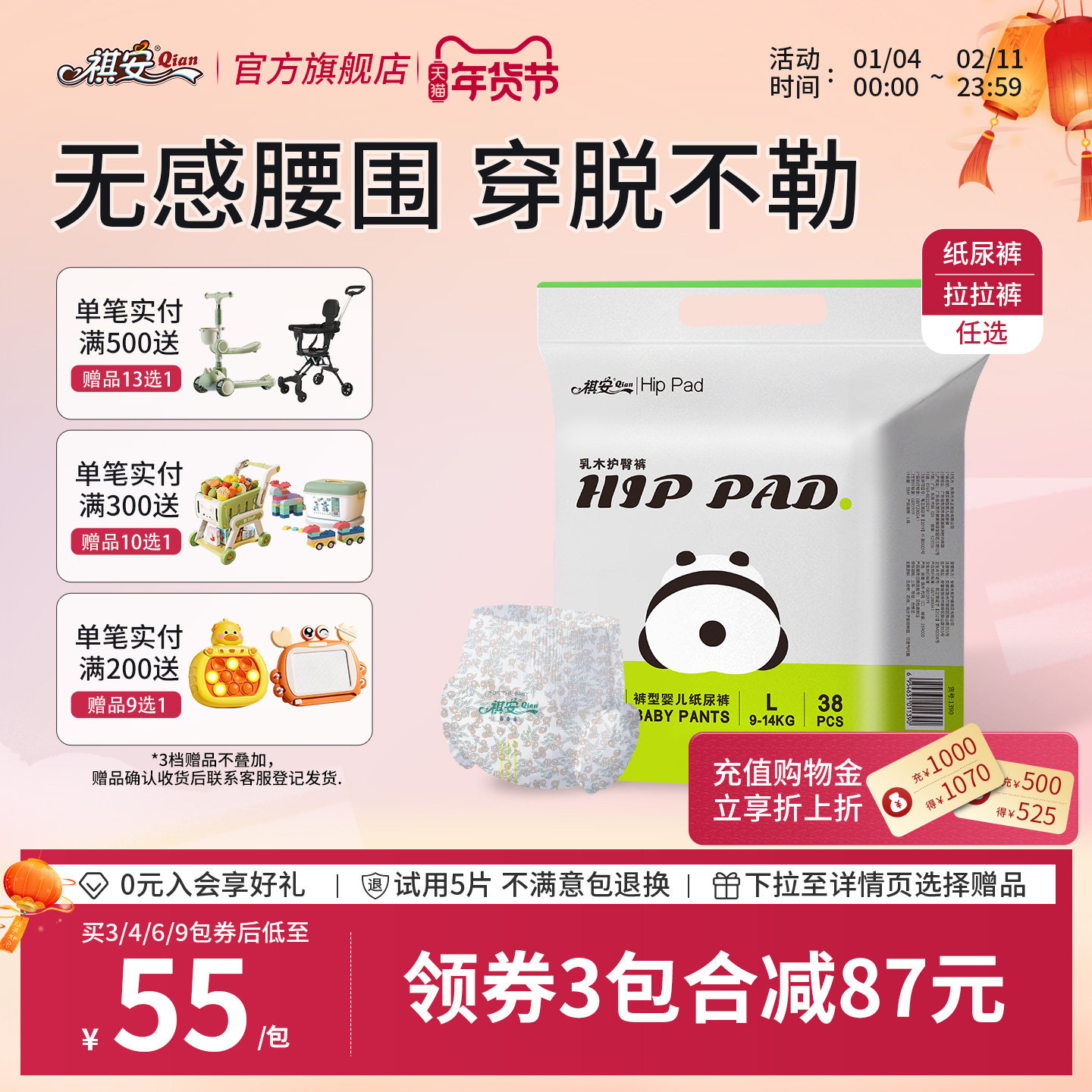祺安乳木果超薄透气小花裤新生儿宝宝通用无感腰围纸尿裤拉拉裤