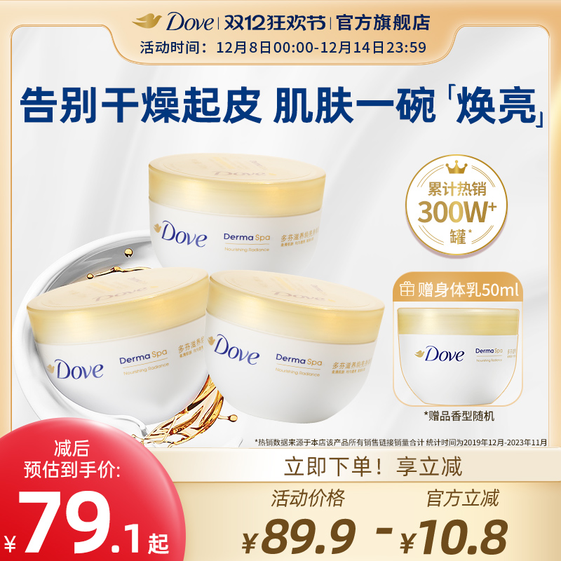 多芬大金碗滋养焕亮肌肤保湿滋润秋冬季身体乳300ml*3罐官方正品