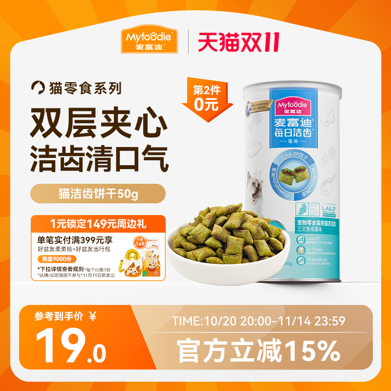 麦富迪猫零食鸡肉磨牙洁齿改善口臭牙结石成幼猫咪饼干小零食50g