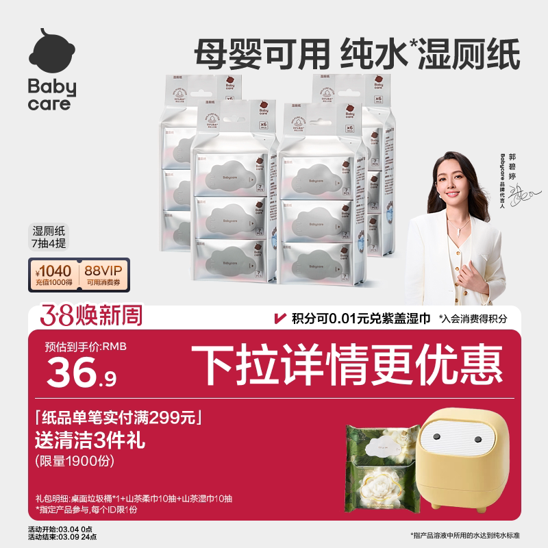 babycare纯水湿厕纸巾便携装小包擦屁股男女士湿厕纸巾官方旗舰店