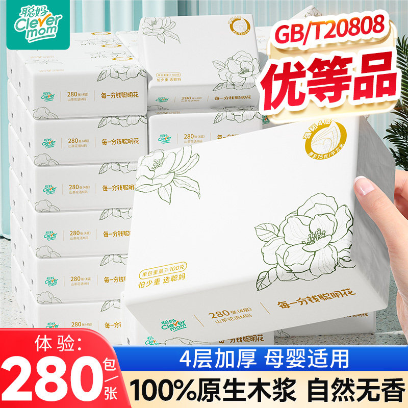 聪妈纸巾抽纸整箱批家用实惠装大包婴儿卫生纸餐巾纸大号面巾纸抽