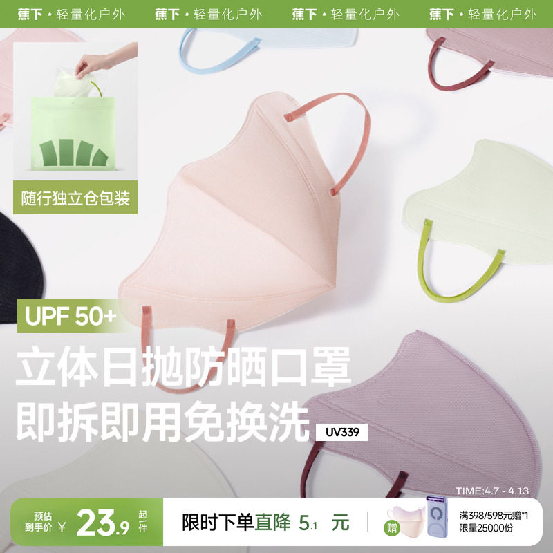 蕉下Beneunder防晒口罩一次性高颜值防紫外线彩色日抛非医用口罩