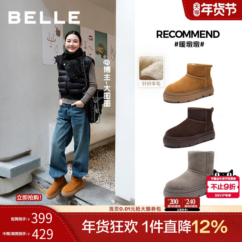 孙乐言张凌赫同款百丽暖墩墩厚底高筒雪地靴中筒加绒毛毛棉鞋E6C1