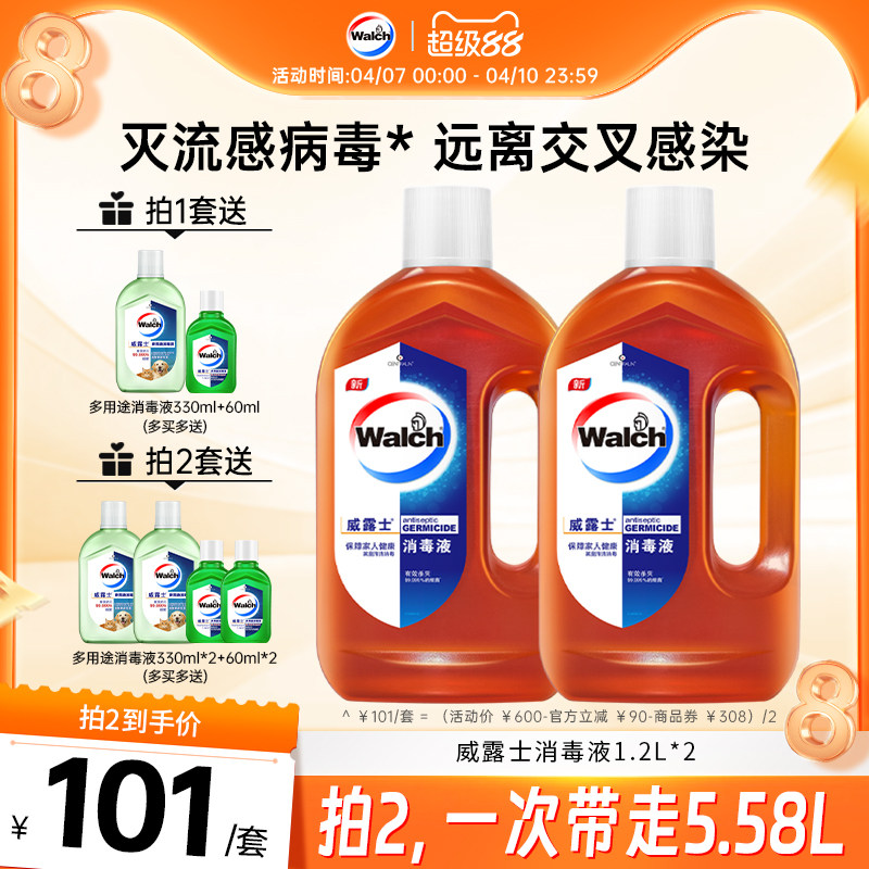 【推荐2套】威露士消毒液1.2L*2家用杀菌室内洗衣玩具家具消毒水