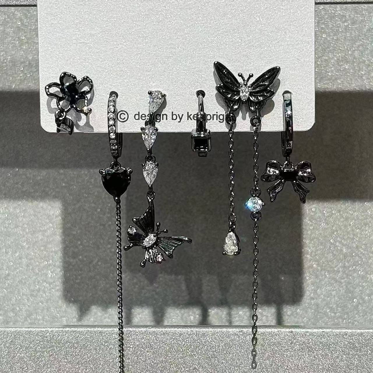 超酷grl ! 爱心锆石六件套耳钉甜酷耳圈小众设计件套暗黑耳扣耳饰