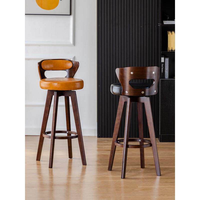 实木吧台椅现代简约酒吧椅子靠背旋转高脚凳吧台凳前台高脚椅家用