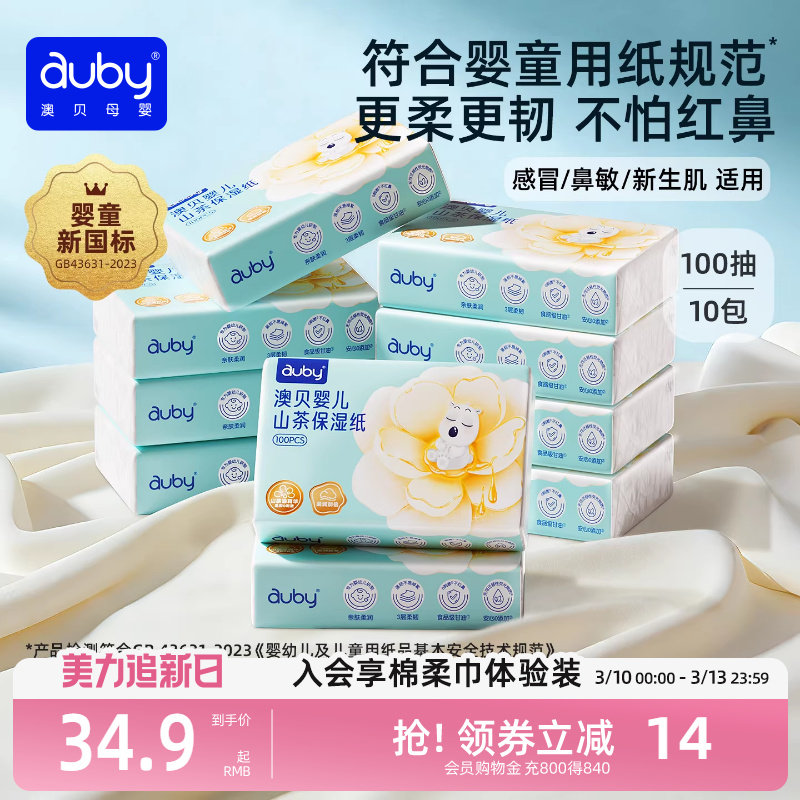 澳贝山茶乳霜纸云柔巾新生婴儿专用宝宝保湿柔纸巾超柔抽纸100抽