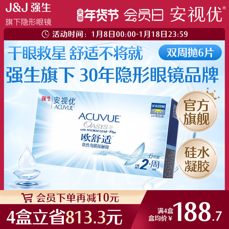 强生安视优欧舒适双周抛6片硅水凝胶近视隐形眼镜半月抛8.8mm基弧