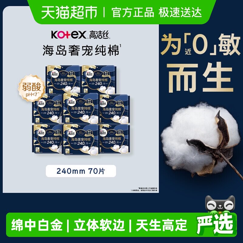 【下拉享优惠】高洁丝海岛奢宠纯棉240mm日用卫生巾姨妈巾