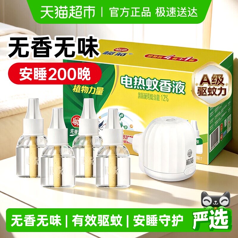 榄菊无香无味电热蚊香液预防白纹伊蚊家用温和驱蚊液组合装无香型