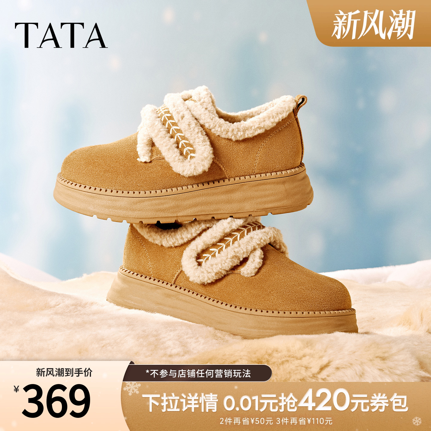 TATA他她小熊勃肯鞋冬毛毛鞋单鞋厚底加绒保暖防滑棉鞋女CYY07DM5