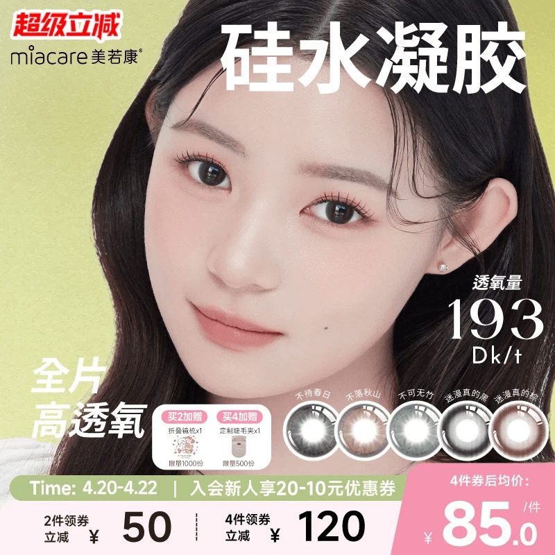 美若康硅水凝胶辻花迷漫月抛2片氧气曈美瞳彩色隐形眼镜三明治