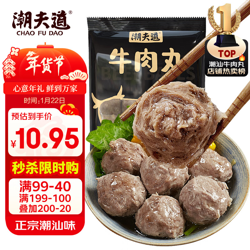 潮夫道牛肉丸潮汕手打250g 火锅食材关东煮丸子丸料空气炸锅生鲜麻辣烫