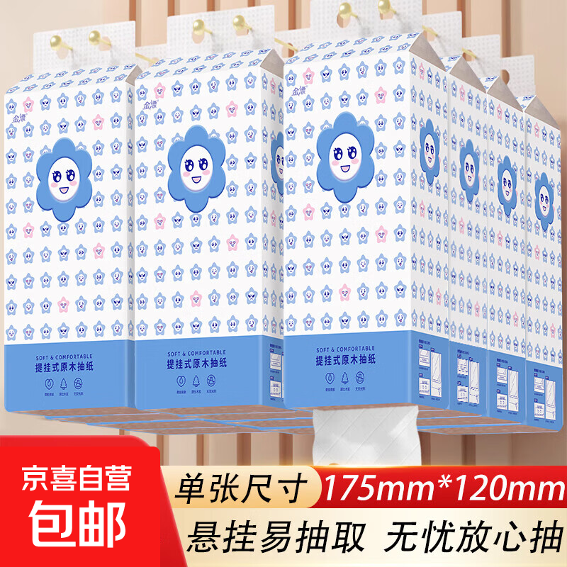 丝飘悬挂式抽纸五层加厚原生木浆柔韧亲肤可湿水抽取式家用实惠装