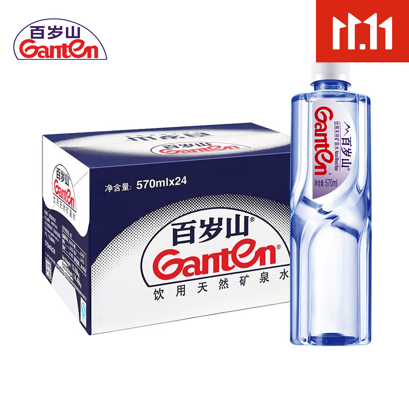 景田 百岁山 天然矿泉水 570ml*24瓶 整箱装 会议办公 家庭健康饮用水