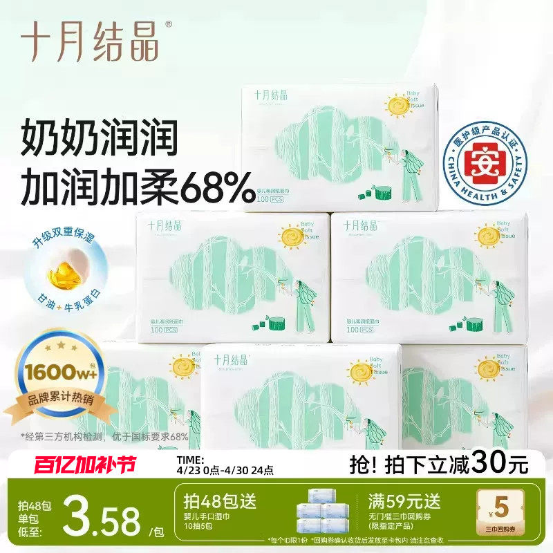 十月结晶小太阳柔润纸云柔巾新生宝宝专用婴儿保湿乳霜纸加柔纸巾