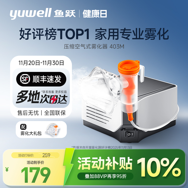 鱼跃雾化机家用儿童老人医用成人吸入器同款面罩婴儿雾化器403M