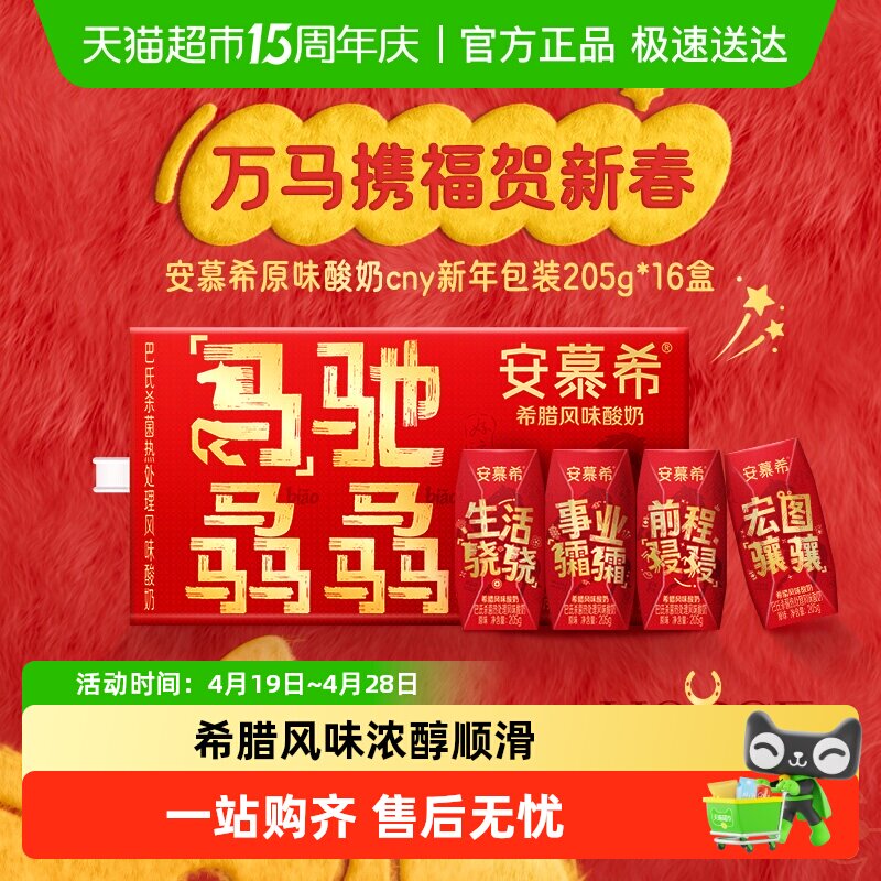 【新年限定】安慕希希腊风味原味酸奶205g*16盒马年送礼礼盒1月产