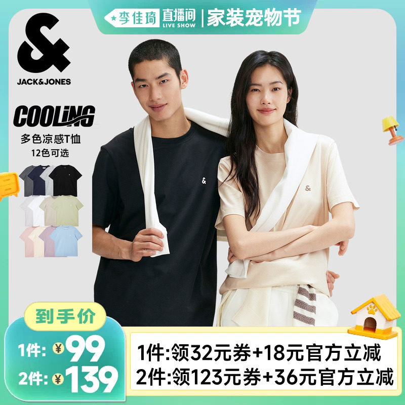 【李佳琦直播间家装宠物节】杰克琼斯纯色凉感刺绣情侣短袖T恤