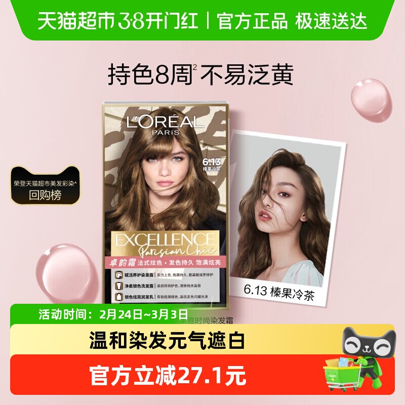 欧莱雅卓韵霜染发剂女榛果冷茶橄榄茶棕赛博蓝黑薄荷青棕染发膏
