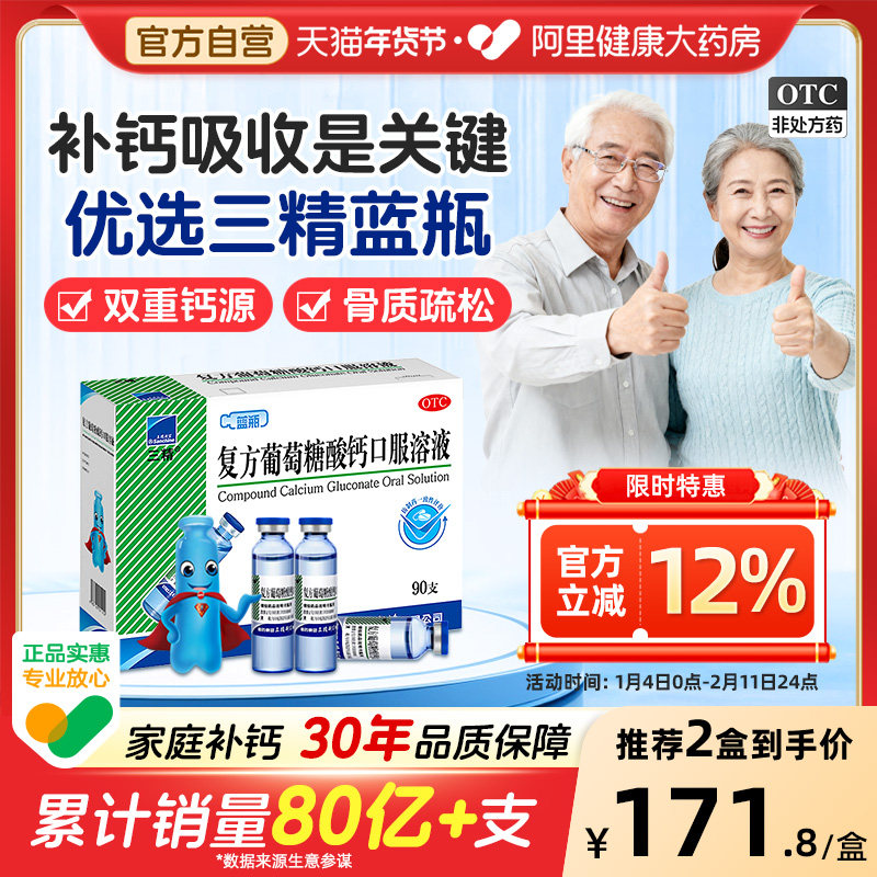 哈药三精葡萄糖酸钙口服液蓝瓶婴儿孕妇液体钙片儿童钙铁锌成人
