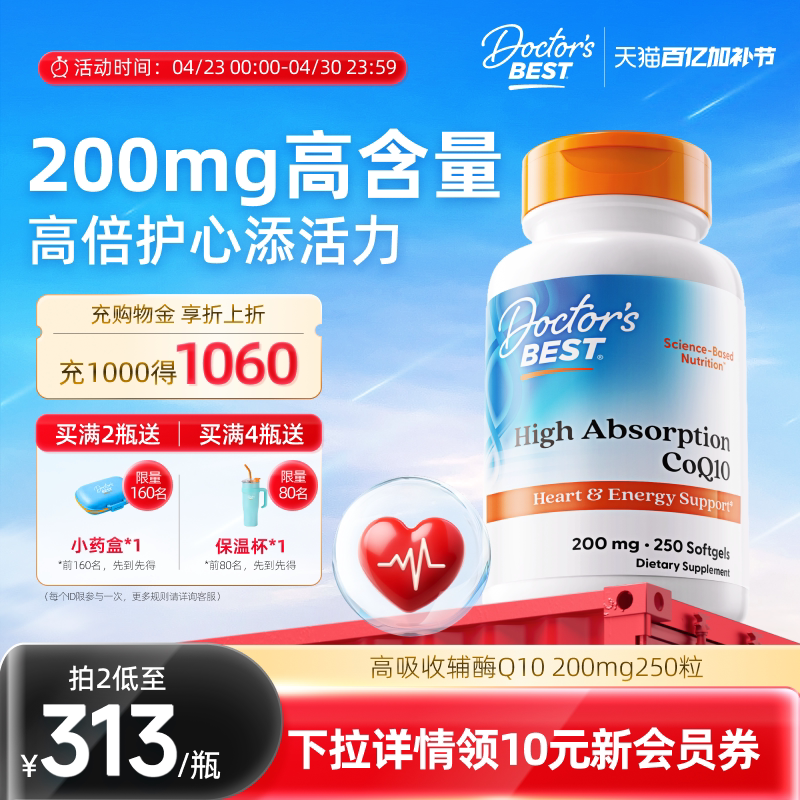 doctorbest多特倍斯辅酶q10软胶囊原装进口高含量护心脏男女200mg