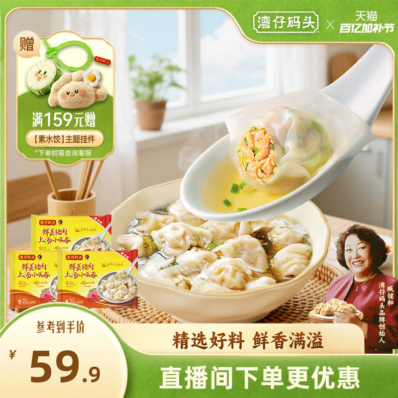 湾仔码头速食早餐小馄饨上汤鲜肉小云吞600g*3组合臧阿姨早餐馄饨