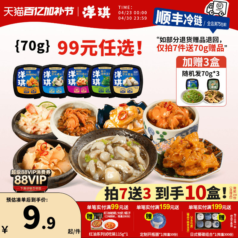 [99元拍7送3]洋琪食品日料小菜海鲜70g芥末章鱼麻辣鲜蛤花甲捞汁
