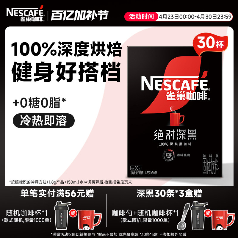 雀巢咖啡绝对深黑咖啡美式无糖0脂黑咖拿铁速溶咖啡粉官方旗舰店