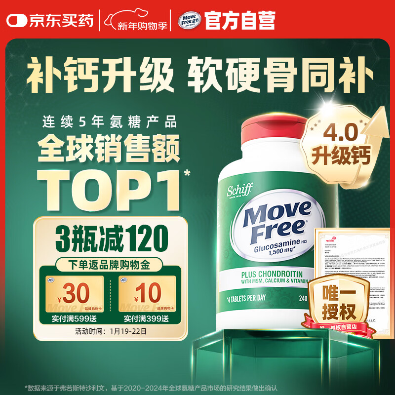 Move Free益节 高钙氨糖软骨素钙片240粒 5合1 维骨力 成人中老年 美国进口