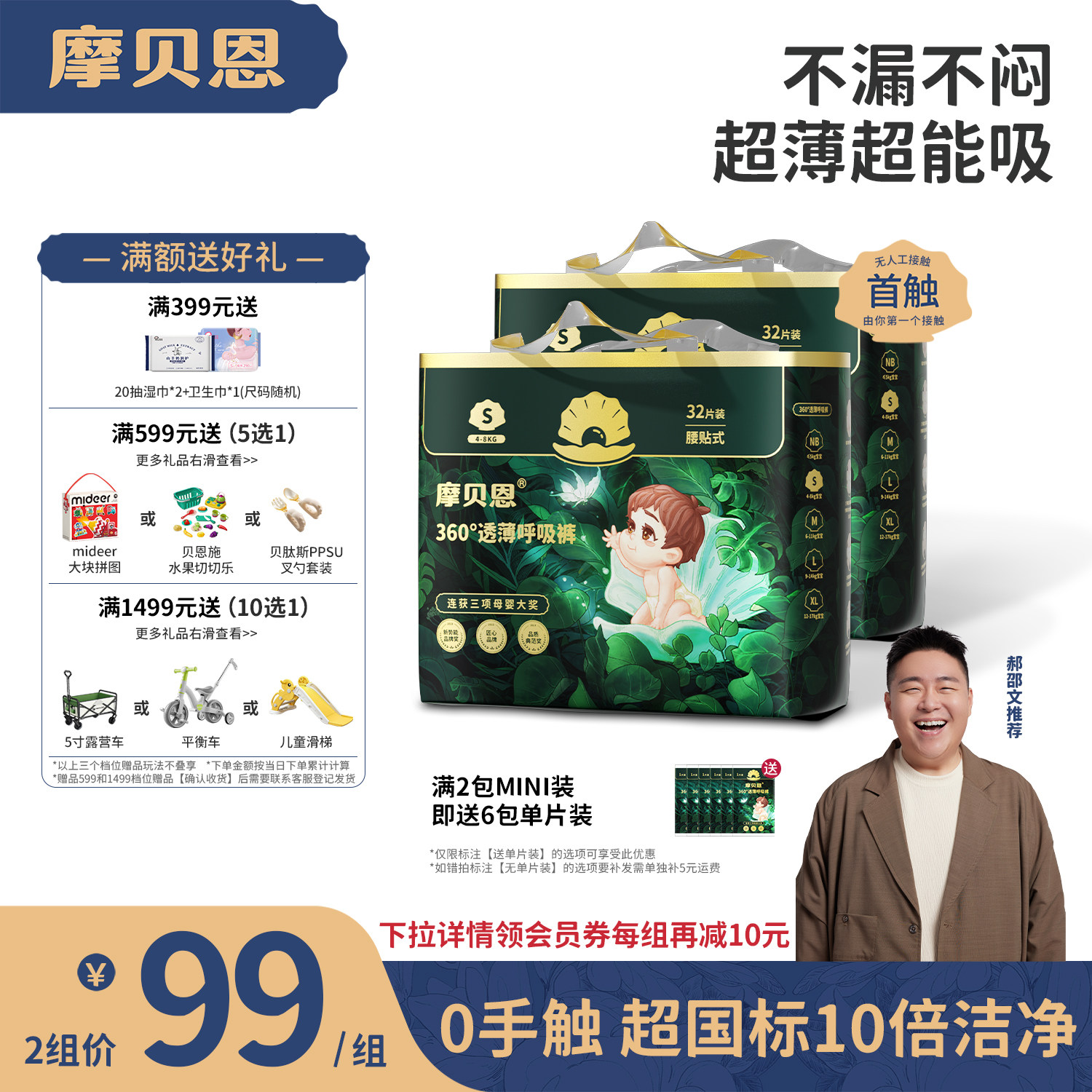 摩贝恩医护级呼吸婴儿纸尿裤超轻薄透气柔软拉拉裤尿不湿防漏不闷
