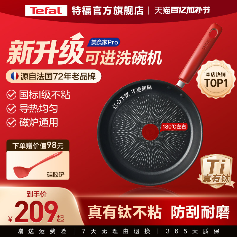 Tefal/特福有钛不粘煎锅平底锅牛排煎锅家用红点煎饼锅燃气电磁炉