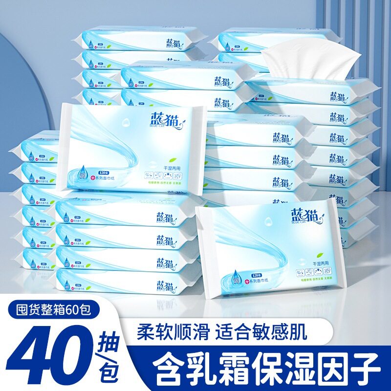 蓝猫婴儿保湿柔纸巾40抽每包3层加厚乳霜纸面巾纸云柔巾抽纸
