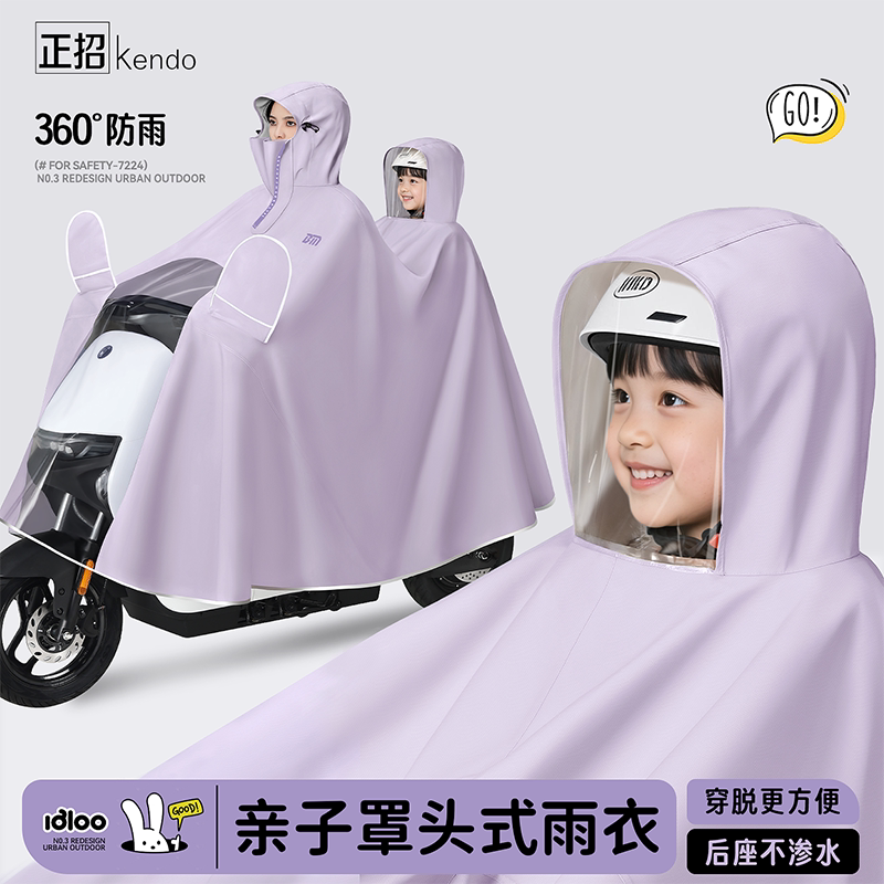 雨衣电动电瓶车亲子全身防暴雨加厚加大成人女带小孩双人专用雨披