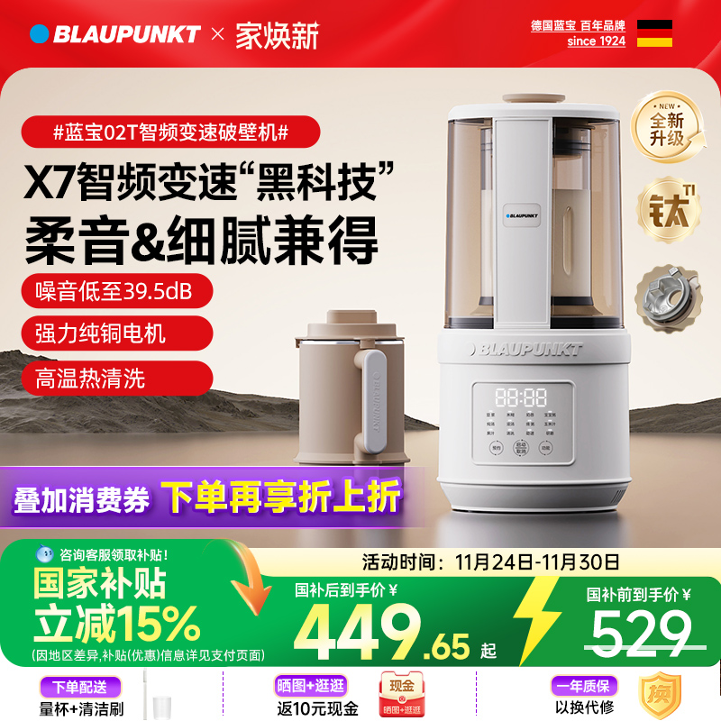 德国蓝宝柔音破壁机家用全自动豆浆机静低噪音无渣辅食料理机新款
