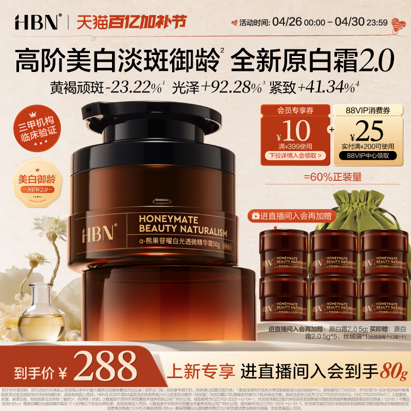【全新升级】HBN原白霜2.0高阶美白淡斑御龄修护保湿精华王牌面霜