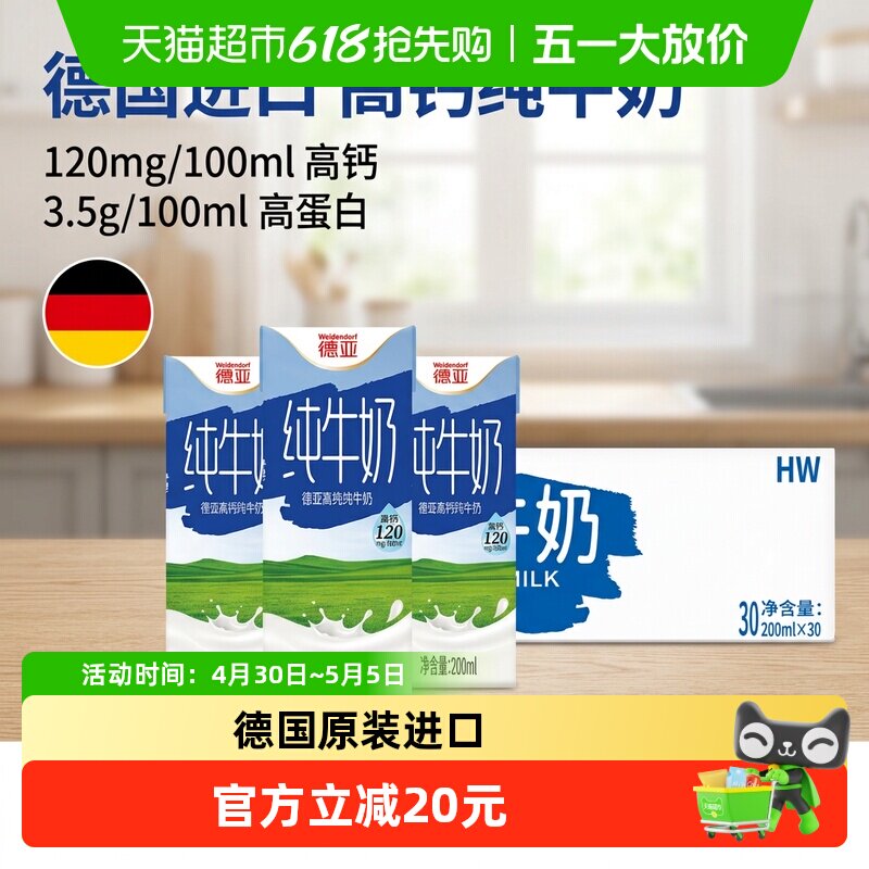 德国进口德亚高钙纯牛奶 营养早餐奶小奶整箱家庭装