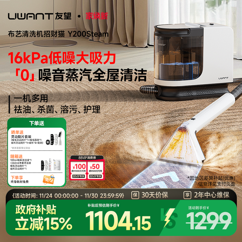 【政府补贴15%】UWANT友望布艺清洗机地毯蒸汽清洁机招财猫Steam
